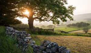 evening sunlight in summer over the Yorkshire Dales near Hawes