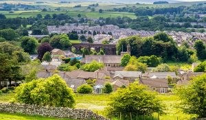 Walking on Attermire Scar above Settle in the Yorkshire Dales National Park on a summers day in June