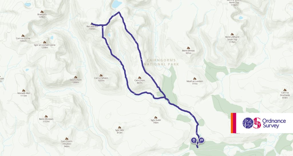 Maps to purchase for this route: OS Explorer OL57: Cairn Gorm & Aviemore / OS Landranger 43: Braemar & Blair Atholl