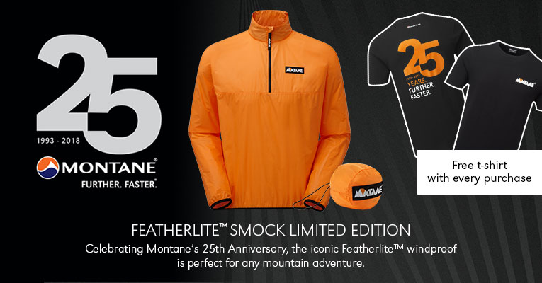To celebrate their 25th Anniversary, Montane have re-created one of their most iconic pieces– the legendary 1999 Featherlite™ Smock. This item is available at GO Outdoors and each purchase comes with a FREE 25th Anniversary Montane Tshirt.