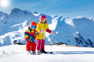 Child,Skiing,In,The,Mountains.,Kid,In,Ski,School.,Winter
