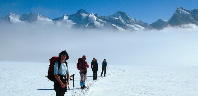 The Bernese Oberland is one of the Alps most impressive ranges. This trek traverses the Bernese Oberland range from east to west on a wonderful high-alpine trail across glaciated terrain; you will be roped up and wearing crampons for long sections of the trip.