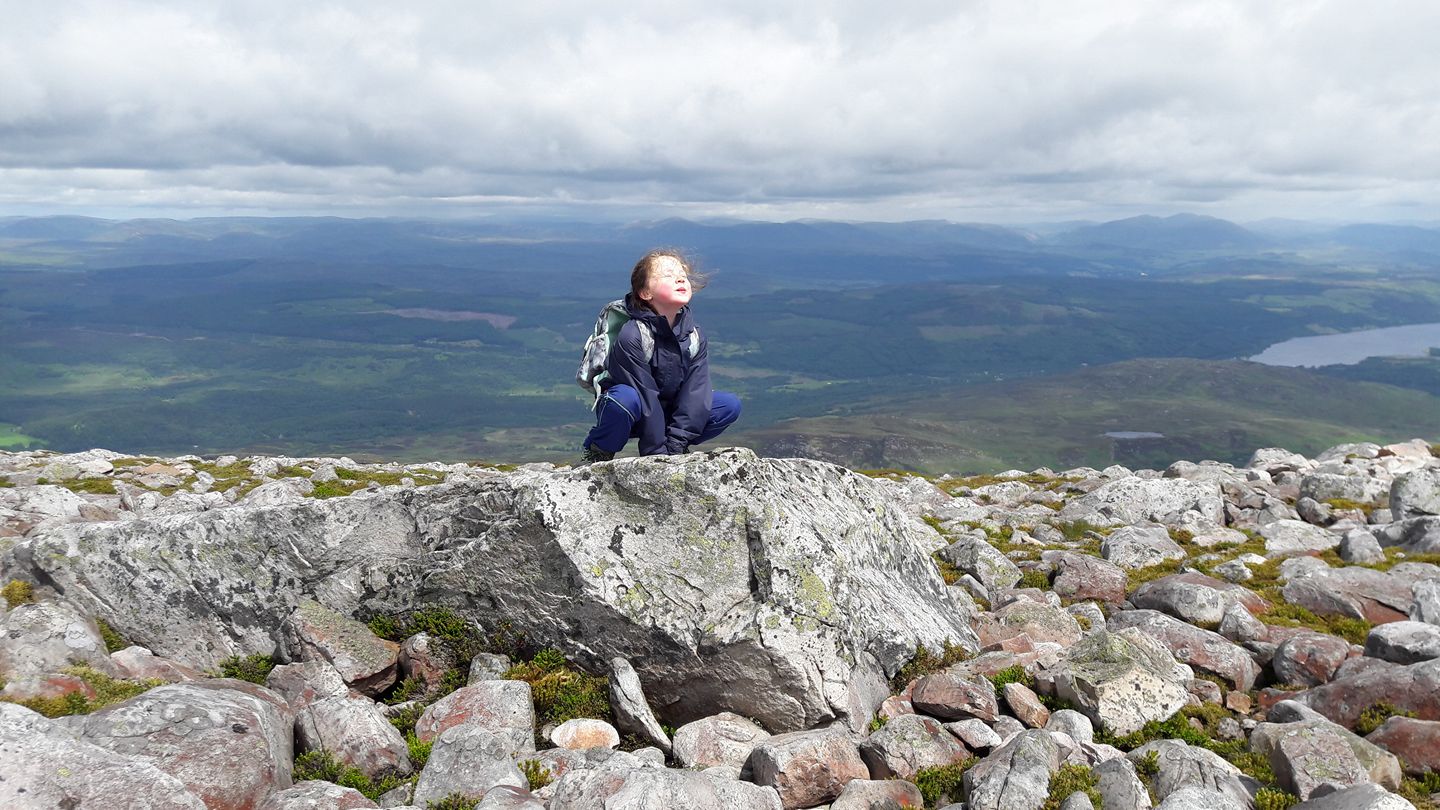Facebook: Pamela Drewett - My 8yr old daughter finding her 'pride rock' whilst climbing her 1st Munro, Schiehallion. Perthshire spreads across the horizon
