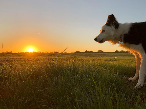 Instagram: @pepperthecollie - Why isn’t that ball moving? #sunrise #sun #orangesun #morning #ballchaser #ballchasing #ball