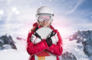 Portrait,Of,A,Female,Snowboarder,In,A,Red,Winter,Jacket