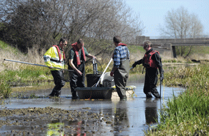 As seen in this photo, the EA took the decision to electrofish and transfer fish from the rapidly drying up Maxey Cut and transfer them to the River Welland near Market Deeping in Lincolnshire.