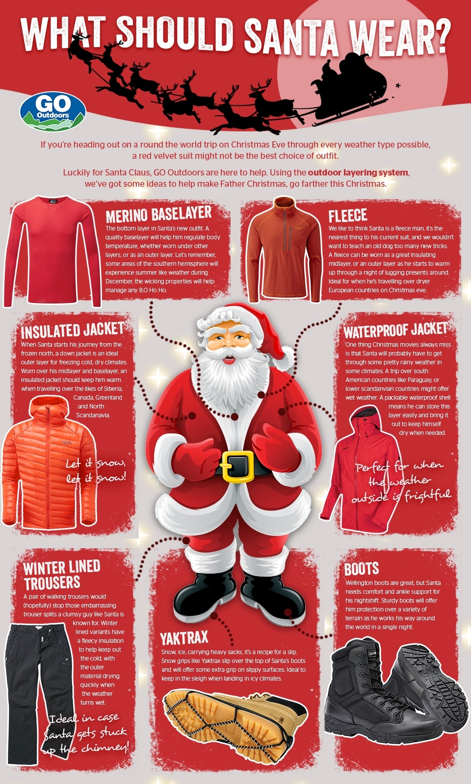 For a man that lives in the North Pole (or Lapland, depending on your story), Santa never seems to feel the cold. When he’s making his rounds on Christmas eve, he’ll be crossing through all manners of weather – so we’ve decided to offer the big man some advice to make the trip a little more comfortable.